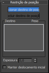 O valor de Peso é significativo (e está disponível) somente com vários destinos. Um valor de 0 significa que o destino não tem nenhuma influência. Um valor maior do que 0 faz com que o destino influencie o objeto restringido com relação às configurações de Peso de outros destinos. Por exemplo, um destino com um valor de Peso de 80 tem o dobro da influência de um destino com um valor de Peso de 40.