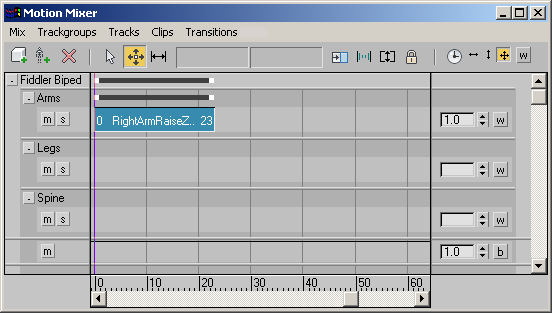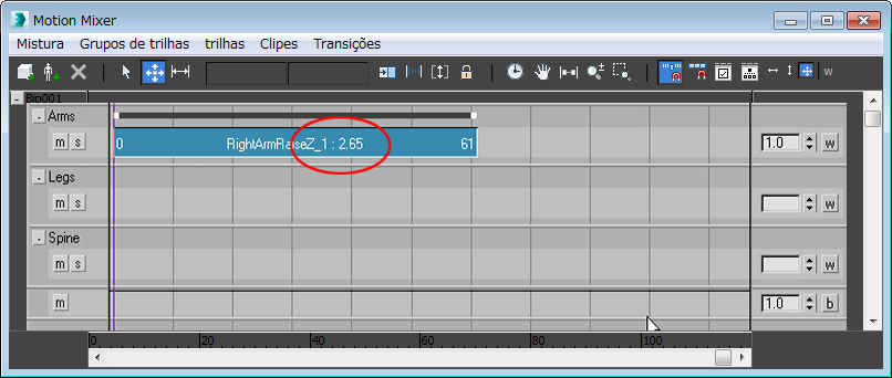 Você pode aumentar ou reduzir a velocidade de um movimento alterando o comprimento do clipe no Mixer. Esticar um clipe retarda o movimento, enquanto seu encurtamento o acelera.