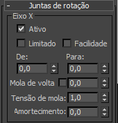 - Quando ativado, o eixo é limitado e o objeto pode mover ou rotacionar dentro do intervalo definido pelos campos De e Para.