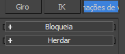 Esta parte do painel de hierarquia contém duas implementações. A implementação Bloqueios contém controles para restringir o movimento dos objetos em um determinado eixo. A implementação Herança contém controles para limitar as transformações que um filho herda a partir do objeto de nível superior.