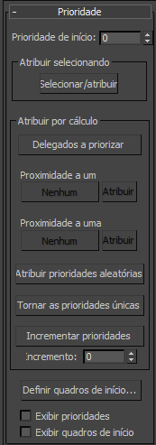 - Define o valor da prioridade inicial. Aplica-se aos primeiros quatro métodos de definição de prioridades: Atribuir por seleção, Proximidade com um objeto, Proximidade com uma grade e Atribuir prioridades aleatórias. Padrão=0.