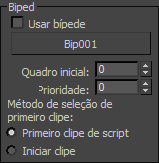 - O primeiro clipe do script atual Utiliza o primeiro clipe no script do fluxo do movimento do bípede, se existir um script. Se esta opção for selecionada, mas não houver um script, uma mensagem de erro será gerada.
