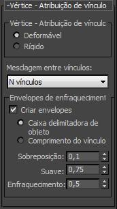 - Deformável (O padrão). Cria invólucros deformáveis para os vínculos.