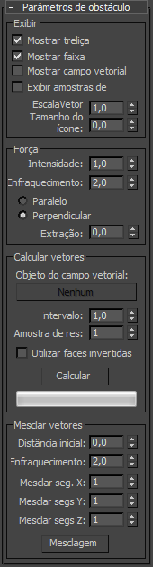 Permite designar o objeto de obstáculo. Clique neste botão e selecione o objeto em torno do qual o campo de vetor deve ser gerado. A partir deste momento, o nome do objeto aparece no botão (inicialmente denominado "Nenhum").