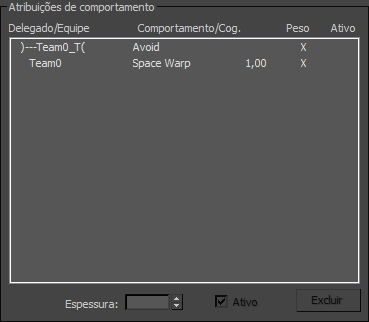 - Exibe todas as atribuições de comportamento atuais, incluindo equipe ou nome de delegado, comportamento atribuído ou controlador cognitivo, configuração do peso e status ativo.