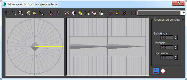 À direita do Editor de convexidade há dois painéis para definir os parâmetros. Use o painel Ângulos de convexidade para alterar as configurações de convexidade do ângulo de convexidade ativo.