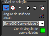 - Muda o valor do ângulo do ângulo da articulação atual do esqueleto no ângulo de convexidade atual (visível no campo Ângulo de convexidade atual do grupo Nível de seleção). Primeiro, use Mover ou Rotacionar em uma viewport para alterar o ângulo entre o vínculo selecionado e seu filho e clique em Definir ângulo de convexidade.
