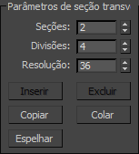 - Ative para selecionar e editar as seções transversais para "tornar convexa" a malha. Os comandos Inserir, Excluir, Copiar, Colar e Espelhar estão ativados para seções transversais.