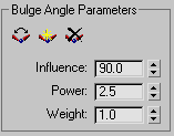 Por exemplo, se você definir um ângulo de convexidade para a junta em 90 graus, um valor de influência de 40 significará que o efeito de convexidade começará a aparecer quando a junta rotacional alcançar 50 graus (90 menos 40) ou 130 graus (90 mais 40).
