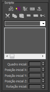 Criar e excluir os scripts, nome scripts, editar as transições clipes, editar e posicionar a toda a animação utilizando as ferramentas no grupo de scripts. Criar aleatório de movimento para um ou mais bípedes usando os controles nesta implantação. Os scripts grupo na implantação do fluxo de movimento está disponível somente quando Modo de fluxo de movimento está ativa.