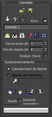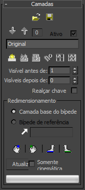 Os pés de cinemática inversa do bípede são ajustados para corresponderem aos da camada base. As chaves de animação são atualizadas para refletir os pés redimensionados da camada atual.