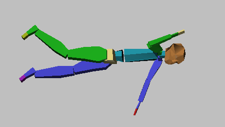 Uma animação de forma livre não contém passos; em vez disso, ela se baseia nas transformações dos objetos de corpo de bípede e no centro de massa. Use a forma livre para movimentos como nadar ou cair, onde passos não são necessários. Se você estiver familiarizado com a criação manual de todos os seus quadros-chave para animar um personagem, talvez vá querer usar exclusivamente o método de forma livre.