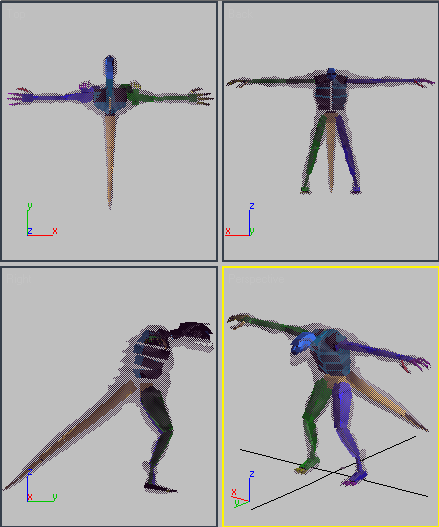 Quando você estiver satisfeito com a postura, verifique o alinhamento em todos os viewports para se certificar de que o esqueleto está posicionado corretamente na malha.