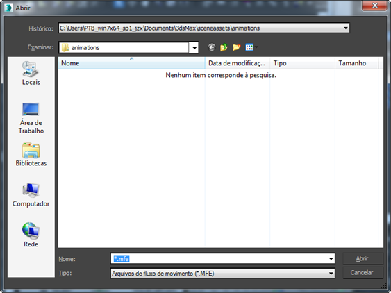 O 3ds Max abre uma caixa de diálogo de arquivo, em que você pode escolher o local dos arquivos BIP.