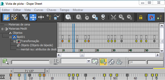Mostra e oculta trajetórias para o objeto de bípede selecionado. É possível editar chaves na trilha horizontal e vertical do bípede ativando Trajetórias, ativando Subobjeto, selecionando a trilha do centro de massa horizontal ou vertical e transformando chaves em viewports.