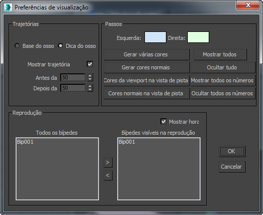 - Pergunta se deseja cores diferentes para os passos à esquerda e à direita. Com base em sua resposta, gera diversas cores para passos nas viewports. Funciona com múltiplos bípedes.