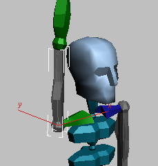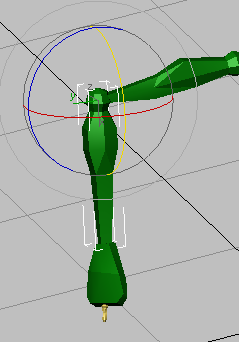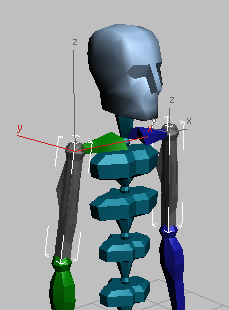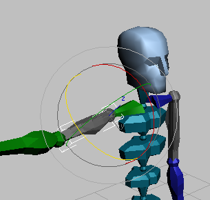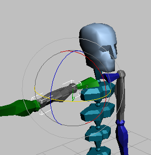A ferramentas de Implementação de Girar poses somente afeta membros com três graus de liberdade (GDL), como braços superiores e coxas, porque é possível controlar seus vínculos de torção ao rotacioná-los. Membros de dois GDL (antebraços e panturrilhas, por exemplo) diferem devido ao fato de que só é possível controlar seus vínculos de torção se você rotacionar seus membros filhos.