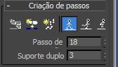 A implementação Criação de passos, disponível no painel Movimento quando o modo Passos estiver ativado, fornece controles para a criação e edição de passos. Cria passos de caminhar, correr ou saltar usando estes controles.