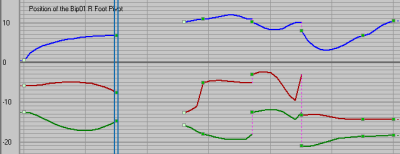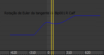 É possível controlar a posição e orientação de um bípede usando as curvas Euler para além das curvas quatérnion no Workbench e Editor de curva. Usar o controlador Euler XYZ é uma forma eficaz de animar seu bípede, pois é possível usar tangentes de Bezier para alterar a interpolação de suas curvas XYZ (as curvas quatérnion não têm tangentes). Para obter mais informações sobre as diferenças entre os controladores de rotação Euler XYZ e TCB, consulte Controlador de rotação XYZ Euler.
