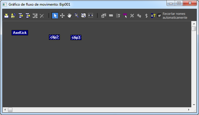 A primeira etapa no fluxo de movimento é o modo Adicionar clipes no movimento Fluxo gráfico para uso em scripts. Corta representam todo ou parte de um arquivo bip. As transições representam diferentes caminhos através dos clipes no Gráfico de fluxo de movimento. Uma transição de loop de volta para o mesmo recorte representa um ciclo ou de um contorno.