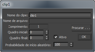 O 3ds Max abre uma caixa de diálogo do clipe.
