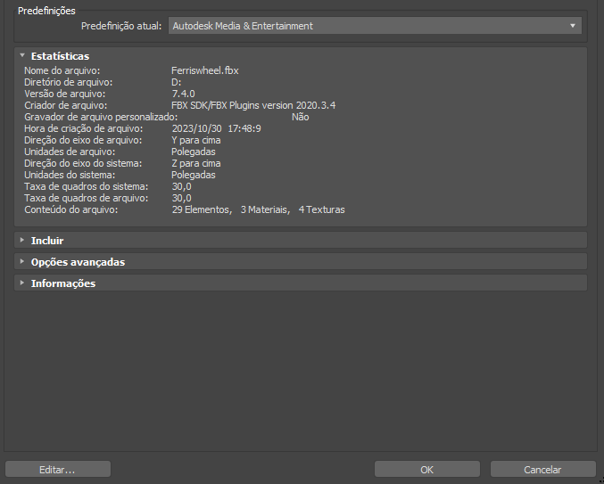 Esta seção descreve como importar arquivos usando o plug-in FBX do 3ds Max: