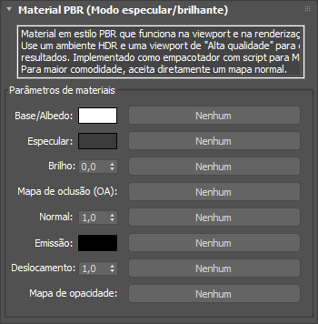 O material PBR (especular/brilho) é um material de renderização com base física e fornece uma representação precisa de como a luz interage com as superfícies.