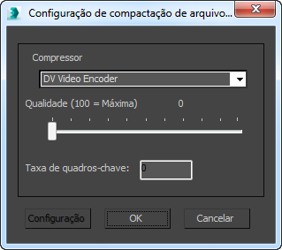 Nota: Ao se utiliza a versão de 64 bits do 3ds Max, o padrão de compactação é Codificador de vídeo DV. A única resolução de saída que o codificador suporta é 720 x 480. Para utilizar uma outra resolução de saída, defina Codificador em uma outra opção.