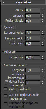 Chanfra as cercas entre os painéis vidrados, como numa janela de madeira convencional. Quando o Perfil chanfrado está desativado, as cercas têm um perfil retangular.