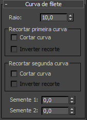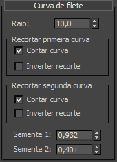 O raio do arco filete nas unidades 3ds Max atuais. Defaut (Padrão)=10,0.