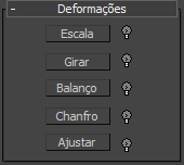 Você ganha acesso para curvas de deformação elevada através da implementação de Deformações do Painel Modificar. As deformações não estão disponíveis no painel Criar. É necessário abrir o painel Modificar após ter dado molde para acessar a implementação das deformações, que oferece os seguintes recursos: