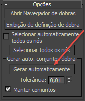 Isto dá acesso às configurações de dobra nos níveis de subobjeto de Vértice ou Aresta.