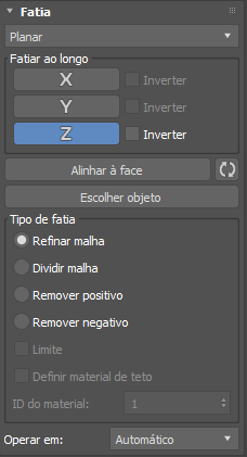 A seleção de um tipo de fatia define como o plano de fatias afetará a geometria ao qual foi aplicado.