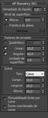 - A altura da superfície superior do líquido simulado. É possível defini-la explicitamente ou com uma primitiva de Plano. A última pode ser animada para simular a movimentação da água.