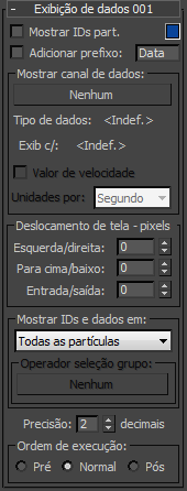 - Activar as partículas somente Exibe somente dados para partículas. Para selecionar as partículas, utilize o painel Modificar > seleção suspensa controla e utilizar os métodos de seleção padrão de viewport para selecionar as partículas para ver seus dados (consulte o fluxo de partículas a documentação para obter mais informações).