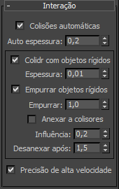 - Quando ativada, o objeto do mCloth pode colidir com corpos rígidos na simulação.