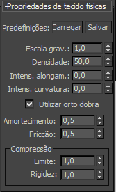 Este parâmetro tem efeito principalmente quando o tecido colide com outros corpos rígidos dinâmicos. A relação de sua massa com a do corpo com o qual ele colide determina a extensão de seu efeito no movimento de outro corpo.