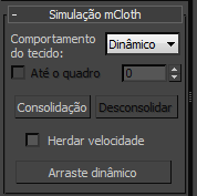 - Consolidar converte o movimento simulado do objeto do mCloth para quadros-chave de animação padrão para a renderização. Somente se aplica a objetos de mCloth dinâmico.