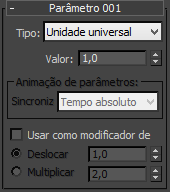 O suboperador Parâmetro define valores exibíveis para outros suboperadores. Isso é particularmente útil quando você deseja exibir o mesmo valor para outros dois suboperadores diferentes, como uma semente aleatória, para a finalidade de manter simples a sua interface do operador. Para obter mais informações, consulte Tipo de dados Igual.