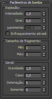 - Especifica o quadro no qual a bomba é ativada. Objetos vinculados não são afetados antes desta vez.
