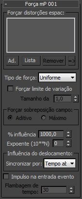 - Para selecionar uma distorção de espaço designada na força mParticles, realce-a na lista e clique neste botão. Isto seleciona a distorção de espaço na cena e facilita o acesso aos parâmetros da distorção de espaço.