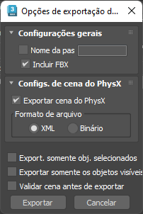 - Salva a cena no formato PhysX, utilizando o tipo de dados especificado (consulte a seguir).