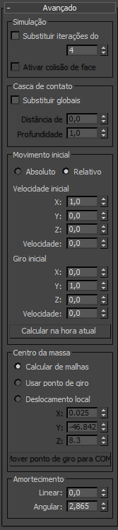 - Quando ativado, MassFX usa as configurações especificadas aqui para colisão sobreposição para o corpo rígido em vez da configurações globais.