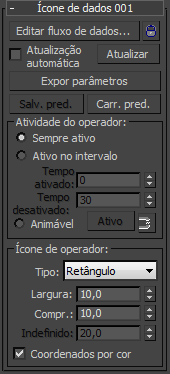 Essa configuração, disponível somente com o operador Ícone dados e as ações Teste do ícone de dados, define os parâmetros do ícone associado à ação.