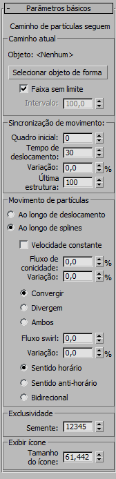 Permite escolher o caminho para as partículas, e especificar o intervalo da influência da distorção de espaço.