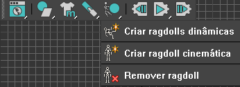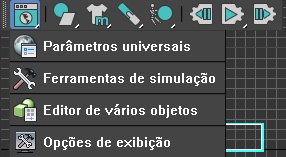Os botões desde submenu fornecem acesso direto a diferentes painéis da caixa de diálogo Ferramentas do MassFX. Também é possível abrir a caixa de diálogo com o comando Mostrar Ferramentas do MassFX no menu Simular