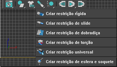 Cada um destes comandos cria um auxiliar de Restrições do MassFX. A única diferença entre eles são os valores que são aplicados como padrões razoáveis para o tipo de restrição descrito.