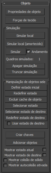 Cria chaves para um objeto de tecido selecionado. O objeto entra em colapso e vira uma malha editável, e qualquer deformação é armazenada como animação do vértice.