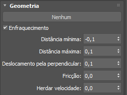 Se a opção Ativar enfraquecimento estiver desativada, mesmo assim é possível usar outras opções, como Deslocamento pela perpendicular, para fazer com que a malha influencie as partículas, e o efeito é aplicado em todos os pontos.