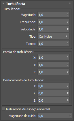 - Define o tempo usado para procurar o padrão de turbulência atual. Por padrão, ele é guiado pelo tempo de cena, mas você pode desconectá-lo, se quiser controlar a evolução do padrão de turbulência de forma independente.
